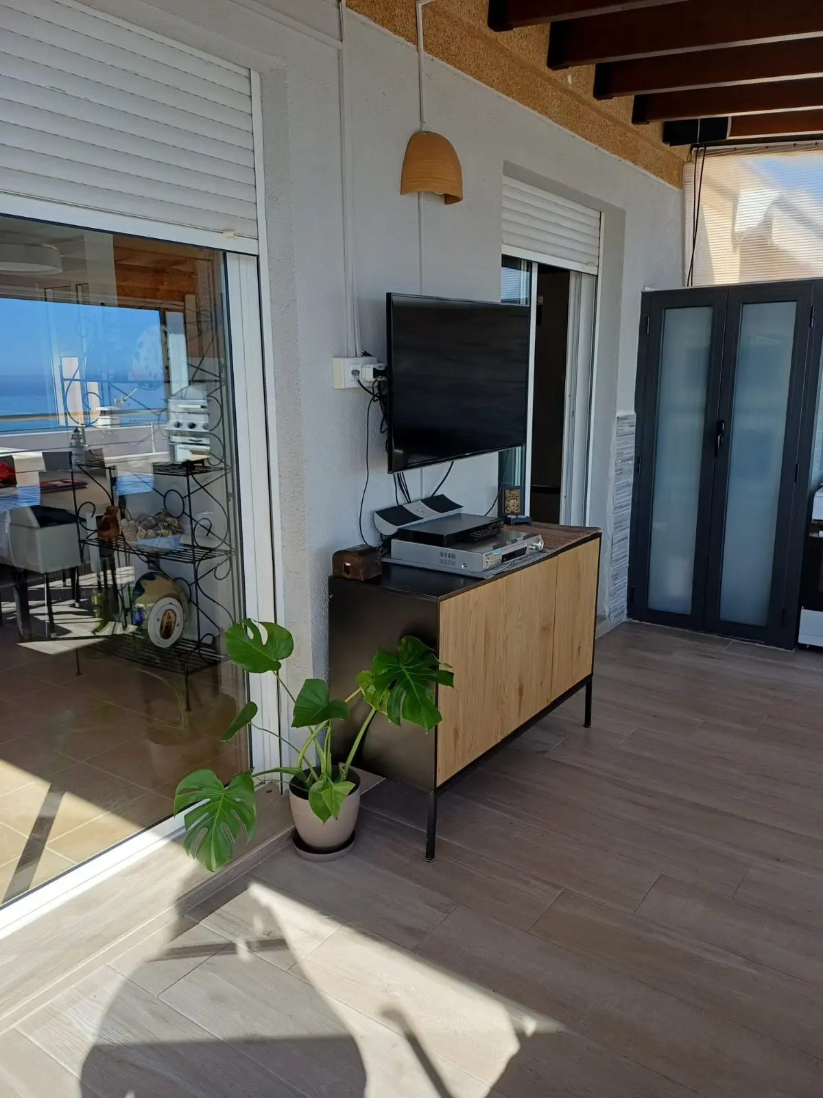 Cuenta con dos dormitorios con cama de matrimonio, un baño completo y cocina interior totalmente equipada. La terraza, amplia y preparada para su uso diario, es uno de los grandes atractivos del ático: perfecta para cenar al aire libre y disfrutar de las noches de verano con el mar como protagonista. Además, dispone de una segunda cocina en la terraza, muy práctica durante los meses más cálidos.
