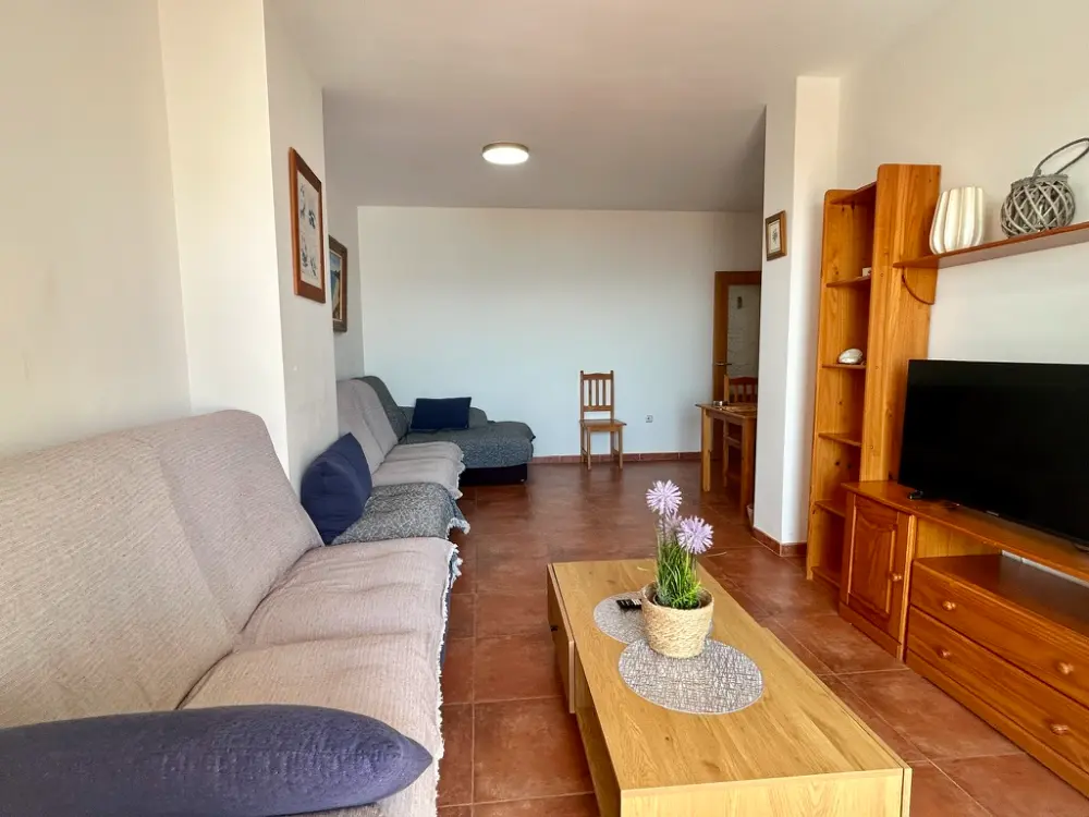La vivienda, de 100 m 2, ofrece un espacio amplio y luminoso con todo lo necesario para unas vacaciones agradables. Cuenta con un salón con balcón ideal para relajarse, cocina equipada, tres dormitorios y dos baños completos.